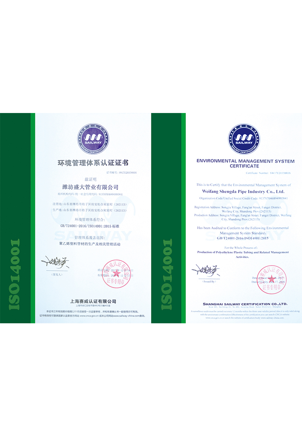 • 環(huán)境管理體系認(rèn)證證書